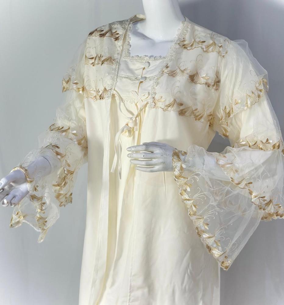 - التصميم والتفاصيل: مكون من ثلاث قطع :الروب قطعتين + الطرحة