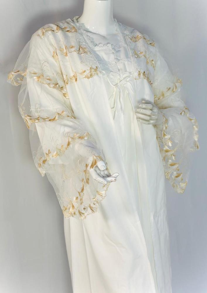 - التصميم والتفاصيل: مكون من ثلاث قطع :الروب قطعتين + الطرحة