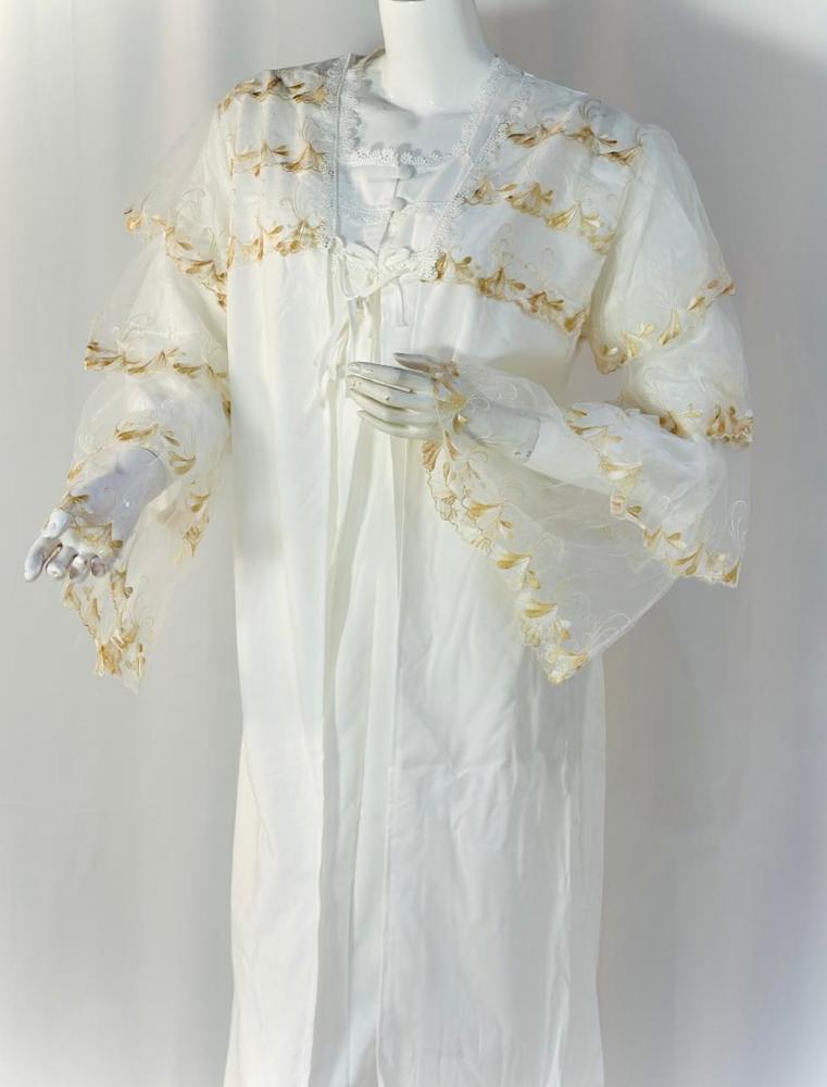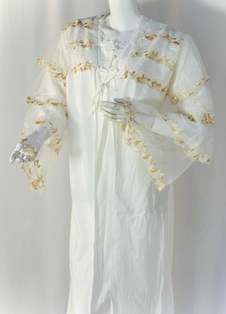 تتميز ملابس استقبال النفاس بتصميم أنيق ومريح، مزينة بدانتيل مزخرف وأكمام طويلة بتطريزات ناعمة و كشكشة أنثوية بالإضافة إلى حزام قابل للتعديل لضمان ملاءمة مثالية لإطلالة فاخرة.