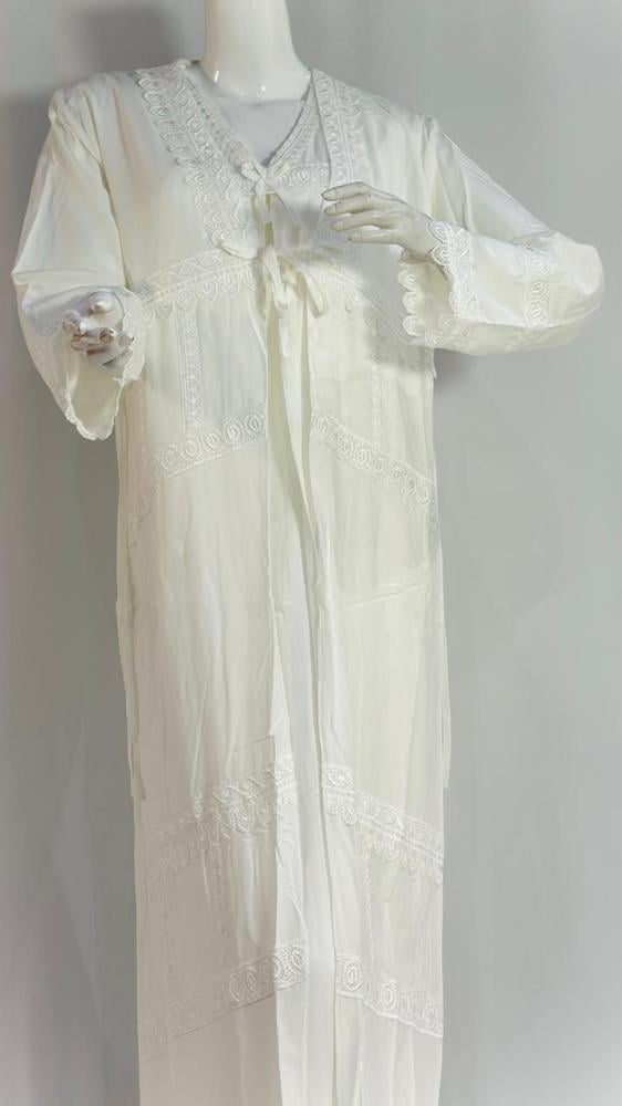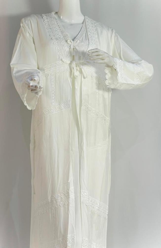 - التصميم والتفاصيل: مكون من ثلاث قطع :الروب قطعتين + الطرحة
